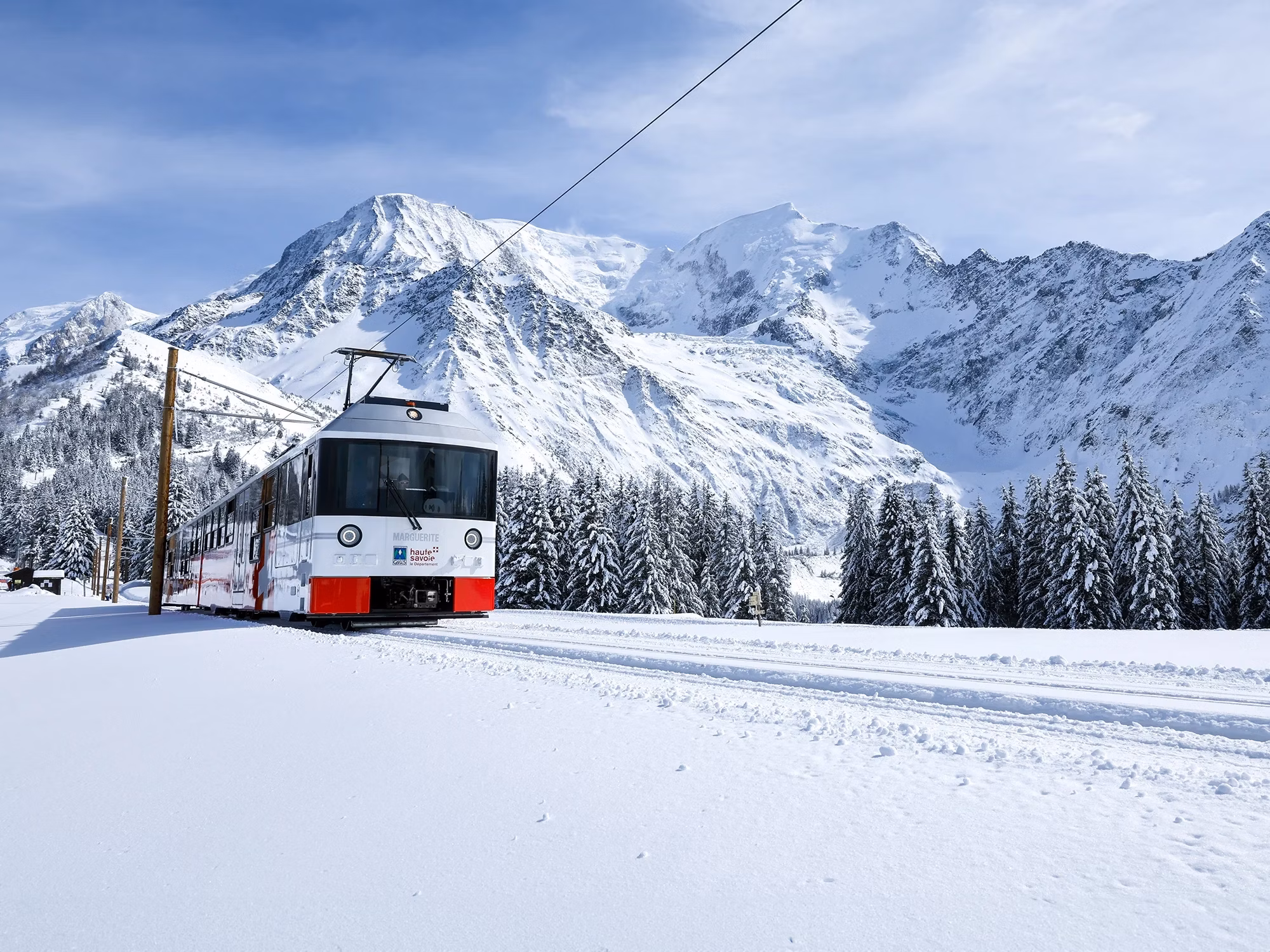 Le Tramway du Mont-Blanc est une expérience unique qui vous transporte au cœur des Alpes. Construit en 1909, ce train à crémaillère historique grimpe jusqu'au Nid d'Aigle à 2372 mètres d'altitude, offrant des panoramas exceptionnels sur les glaciers, les aiguilles et les sommets environnants. Le trajet de 12 km traverse des paysages alpins spectaculaires, des forêts de mélèzes aux alpages fleuris, avant d'atteindre le glacier de Bionnassay. C'est le point de départ idéal pour les randonneurs souhaitant accéder au refuge de Tête Rousse ou tenter l'ascension du Mont-Blanc par la voie normale.